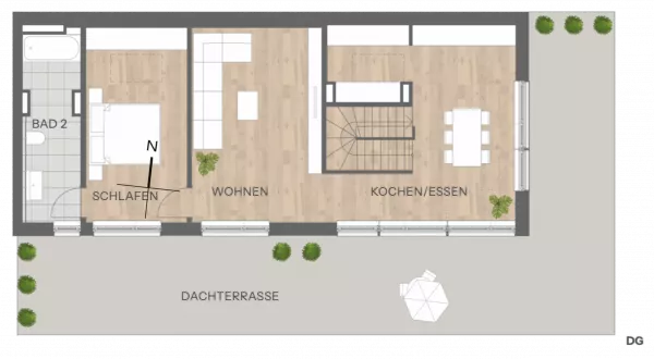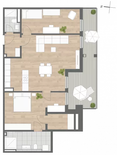 Ein Blick in die Wohnung lässt erahnen, was für ein großartiges Raumgefühl LEONIQ für seine Bewohner bereithält. Offene Wohn-/Essbereiche, hochwertiges Parkett und architektonische Details, ins rechte Licht gerückt durch großformatige bodentiefe Fensterelemente, sorgen zusammen mit einer Fußbodenheizung in allen Wohnräumen für ein besonderes Wohnerlebnis.